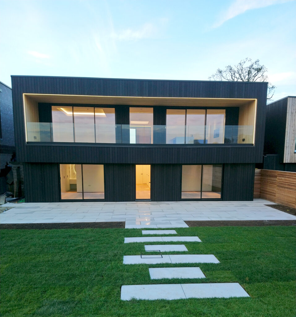 Five new fossil fuel free homes from HF Architecture Ltd have been completed in Hertfordshire. Electric heat pumps provide heating to the homes, while a solar PV array provides off grid electricity. BE were delighted to help the team with the following services: