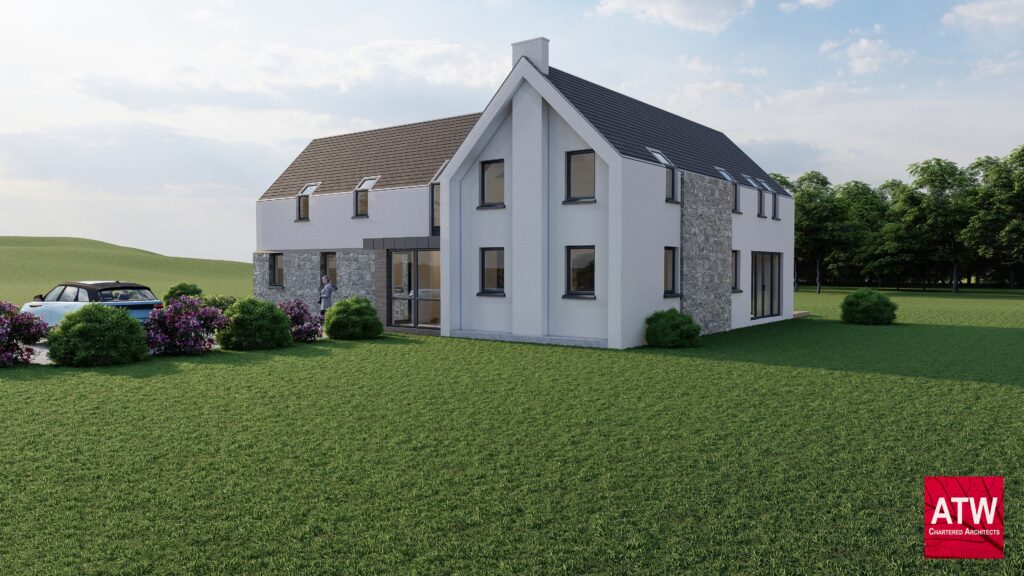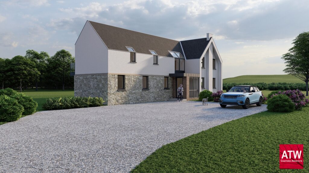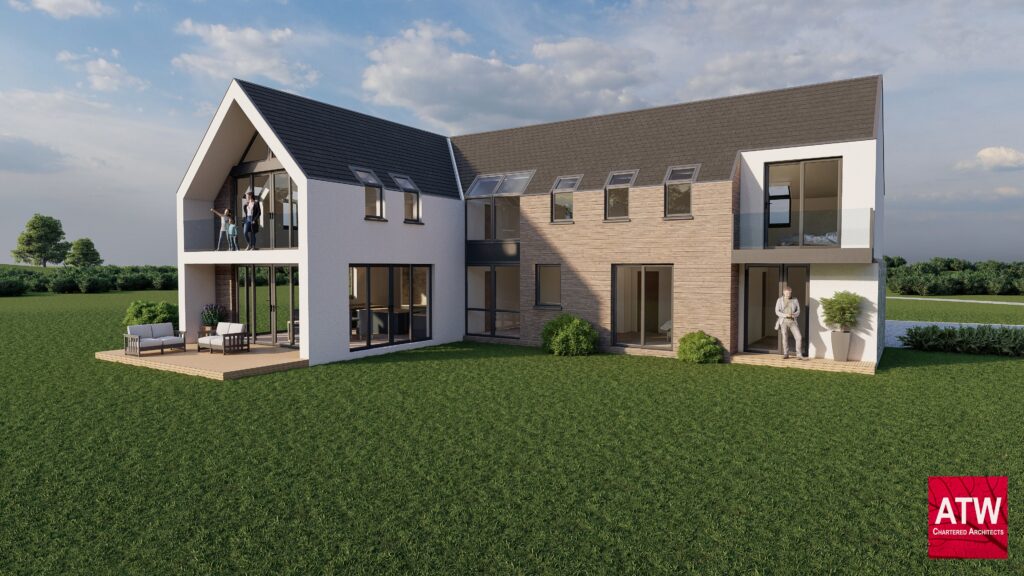 Designed by ATW Chartered Architects, Laigh Hall is a bespoke new build home in Muirkirk, Ayshire. We were delighted to assist the design team with their SAP calculations and in meeting their goals to create a home which was free of fossil fuels. Heating is provided by an electric air source heat pump and a wood burning stove, with hot water from an electric immersion system.