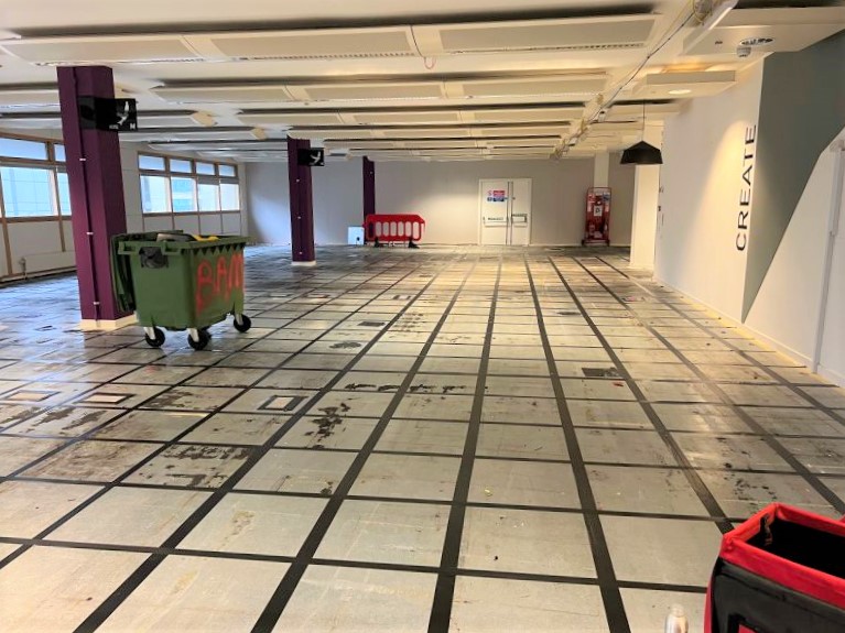 For a Raised Access Floor, two tests are often required. One with the floor tiles taped, and one without tape. This will allow us to work out the leakage of the plenum and the floor tiles separately.